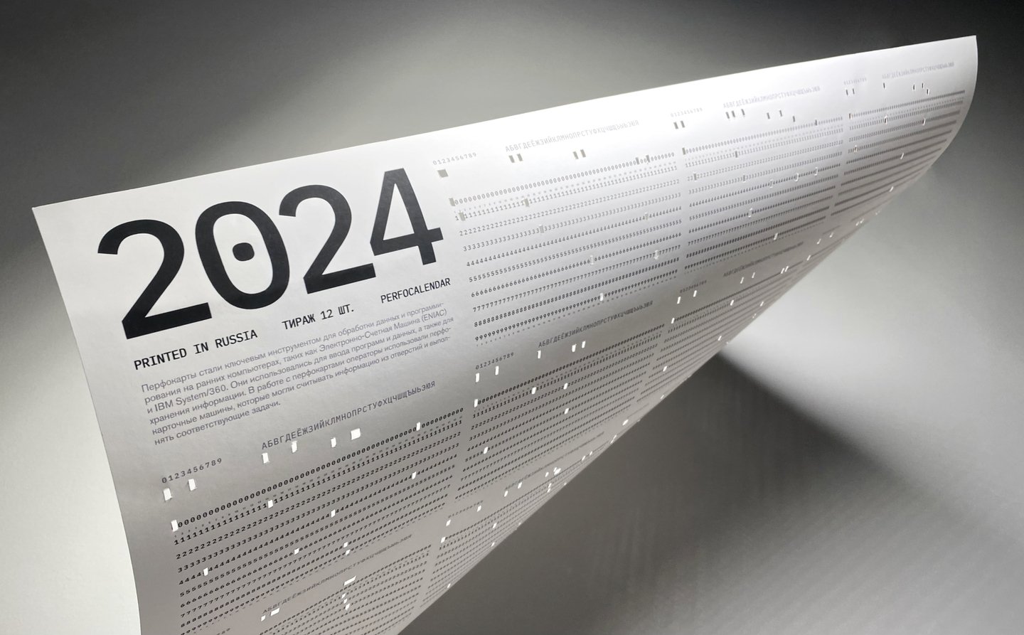 Перфокалендарь — это календарь, вдохновленный перфокартами, которые стали ключевым инструментом для обработки данных и программирования на ранних компьютерах. В комплект входит набор двусторонних 12 карточек и один большой календарь.