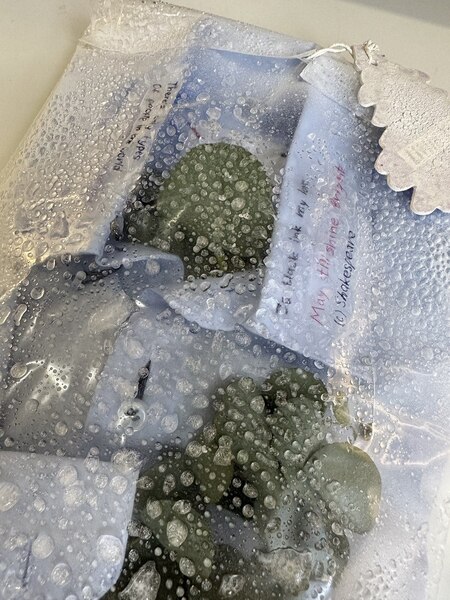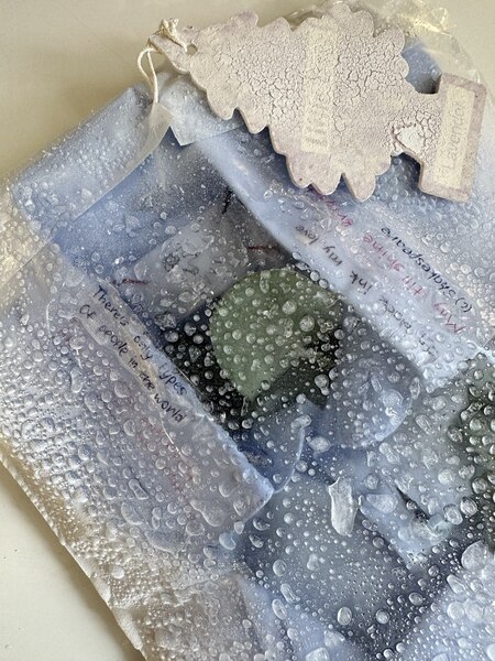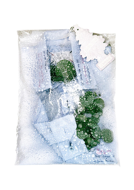 Как поклоннику дадаизма, в мою голову сразу пришел образ-перформанс, рубашка, которую нельзя было бы надеть. Так как основой моего автопортрета является понятие «свежесть», я сразу поняла, что нет ничего свежее новой рубашки. По этой причине было принято решение изобразить рубашку именно в этом состоянии. Также свежим можно назвать морозное утро, именно поэтому одним из состояний упаковки с рубашкой является именно замороженное.