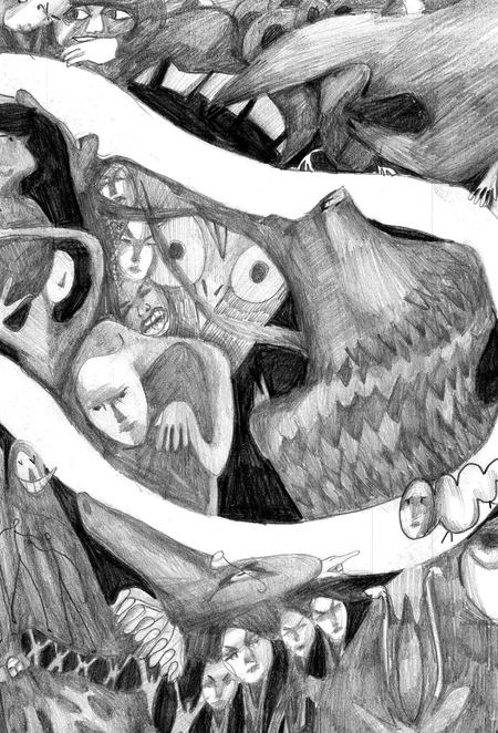 Гусеница путешествует по местности, наполненной враждебными существами, и нигде не может остановиться — что-то постоянно гонит ее вперед, а она сначала и не понимает, что и почему.