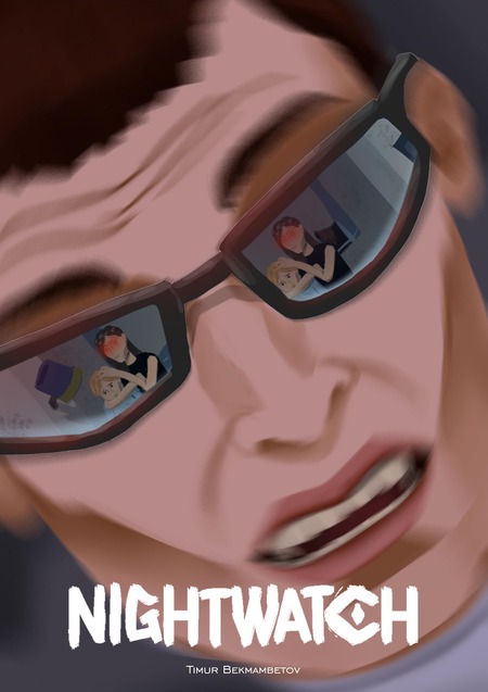 A figure of a man wearing dark sunglasses, where the reflection in the lenses reveals a child along with a figure intending to kill them. The contrast between the man’s face and the reflection emphasizes that this child is the focal point — both a target and someone who must be protected by those striving to uphold good. The red glow in the eyes behind the sunglasses suggests a deep supernatural power, symbolizing the battle between good and evil.
