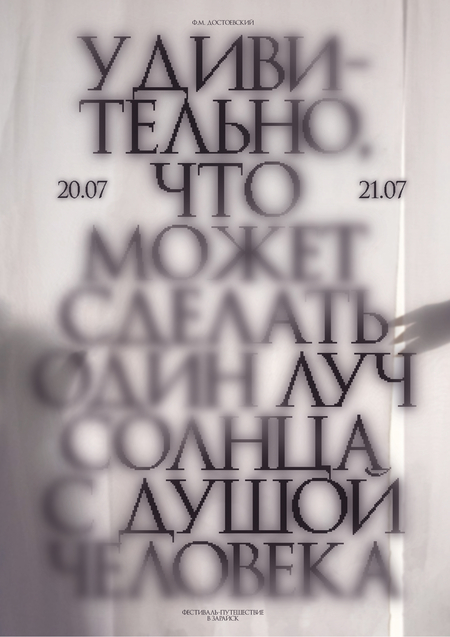 Концепция плаката основана на метафоре театра теней, где свет становится главным фактором образования образов. Он подсвечивает важное и размывает ненужное.
