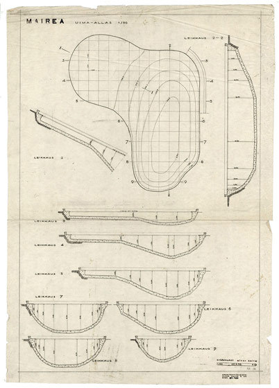 В 1939 году Алвар Аалто создает на вилле Mairea в финском городе Ноормаркку проект необычного бассейна, который своей формой очень напоминает человеческую почку. Для своего времени это было новаторством: Аалто спроектировал первый бассейн с округлым дном и изменяющейся глубиной от одного конца к другому, что делает его форому похожей на чашу — до этого бассейны обычно имели более простые геометрические формы.