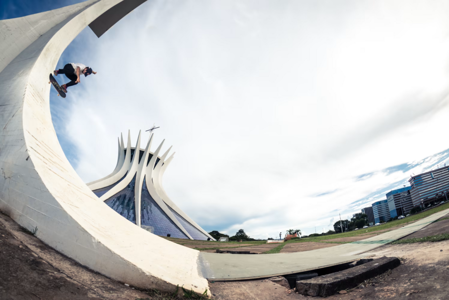 Архитектура Оскара Нимейера, например, отличается пластикой и яркостью. Он считал, что красота и пластика намного важнее острых углов и функциональность. Именно поэтому его архитектура тоже может быть интересной для скейтбординга, в том числе, к его строениям некоторые скейтеры устраивают туры. Большая часть его строений сделана из бетона, однако, несмотря на это, катание на них все же запрещено. По этой причине футуристические постройки Оскара Нимейера стали целью двух скейтеров (Педро Барроса и Мурило Переса), тур которых достаточно интересен для исследования взаимодействия архитектуры со скейтбордингом.