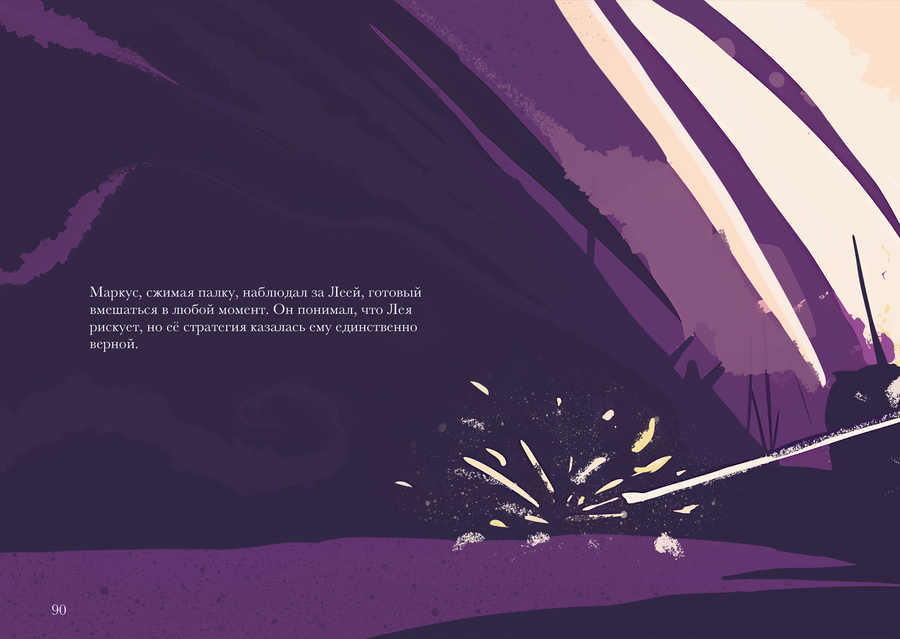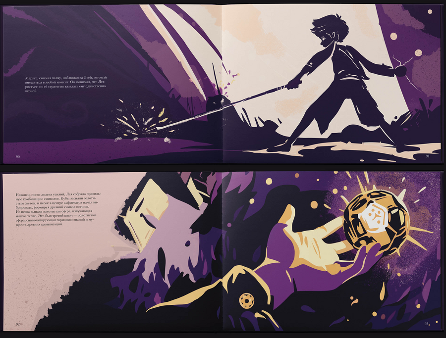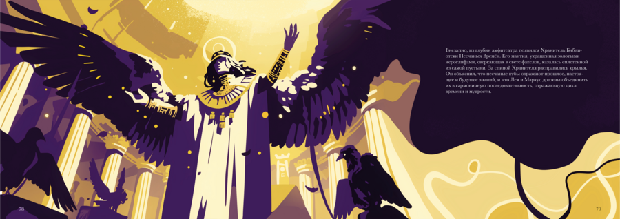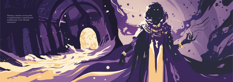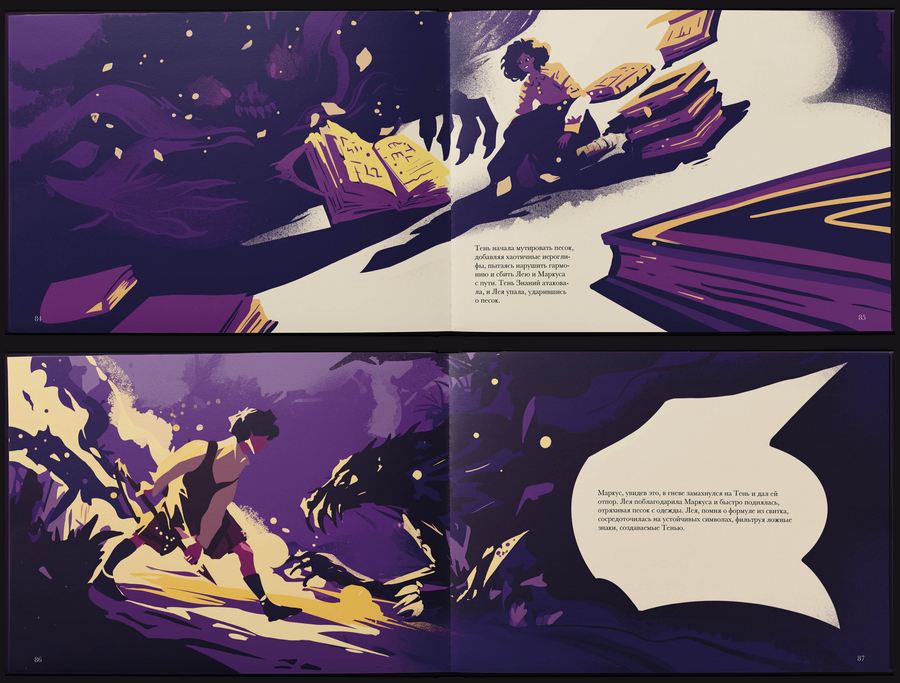 Глава 4 — Песчаная библиотека: фиолетовые, ярко-жёлтые и розовые оттенки.