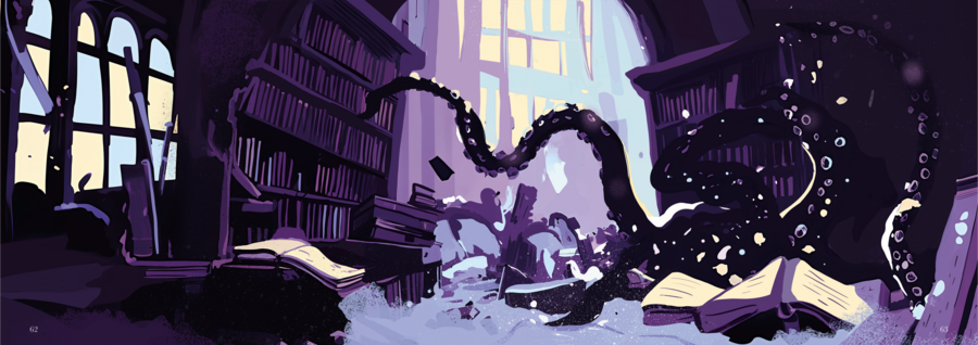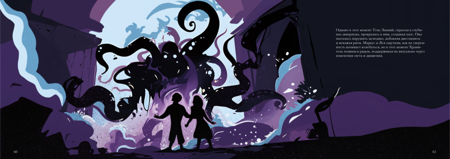 Глава 3 — Морская библиотека: фиолетовые, голубые и жёлтые тона.