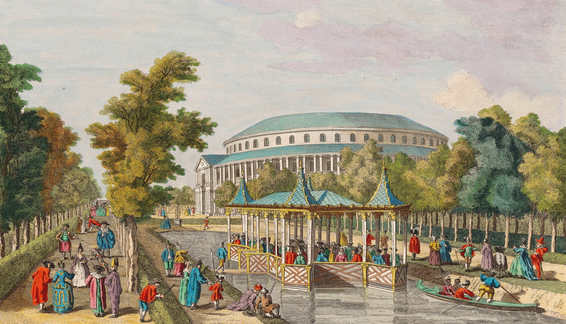 Вид на ротонду в Ранила-Гарденс. Гравюра Томаса Боулза, 1754.