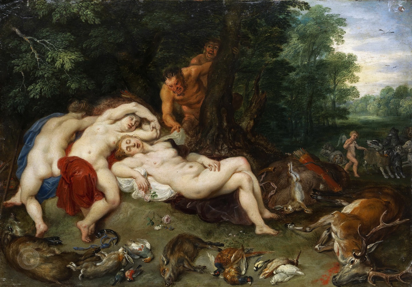 1. Спящие нимфы, обнаруженные сатирами, Ян Брейгель Младший, 2. Пан и Сиринга, Ян Брейгель Старший 3. Венера и Адонис, Питер Пауль Рубенс, 1630ые