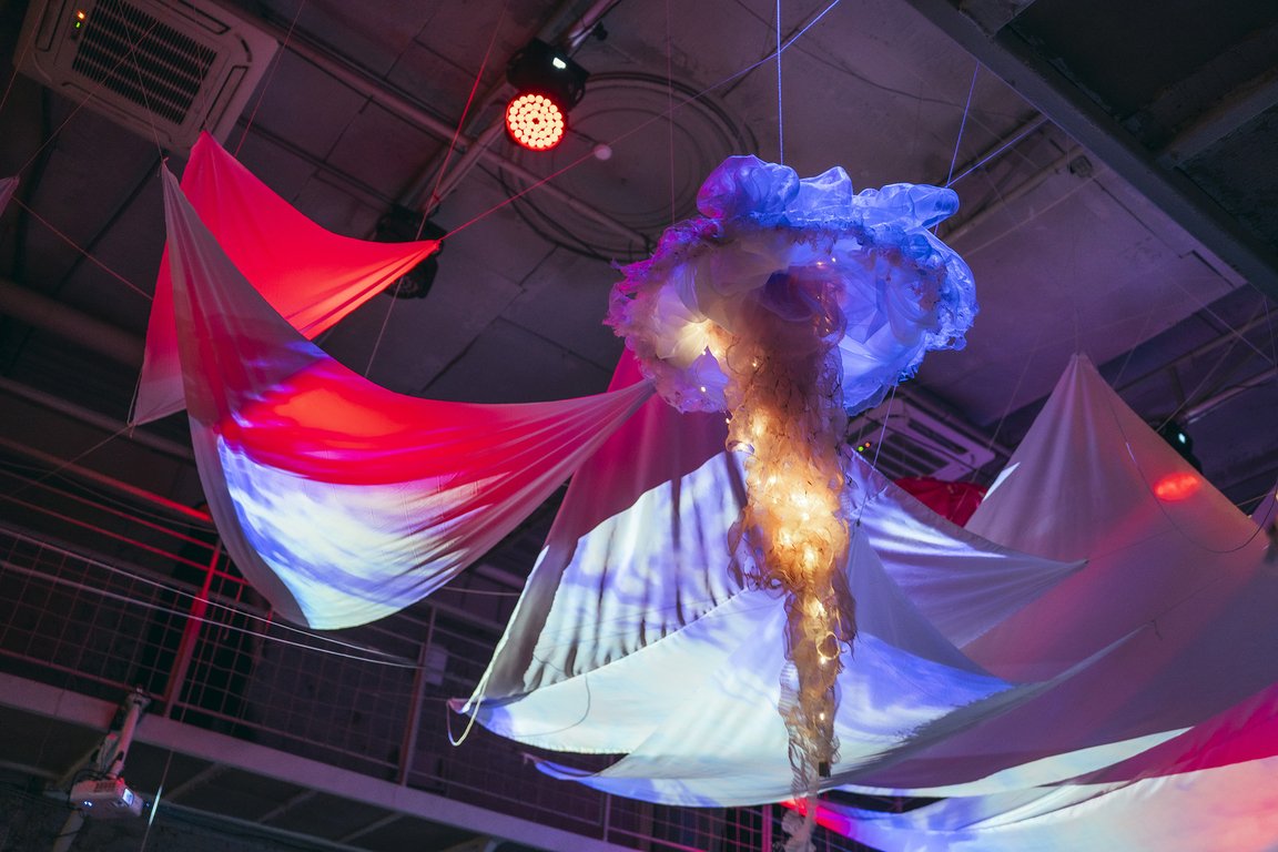 Медузы — одна из самых эффектных деталей ивента. Они неожиданно опускаются сверху и шевелят щупальцами.