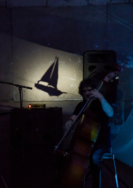 Кораблик поднимался сквозь зрителей вверх, а затем медленно спускался к музыкантам.