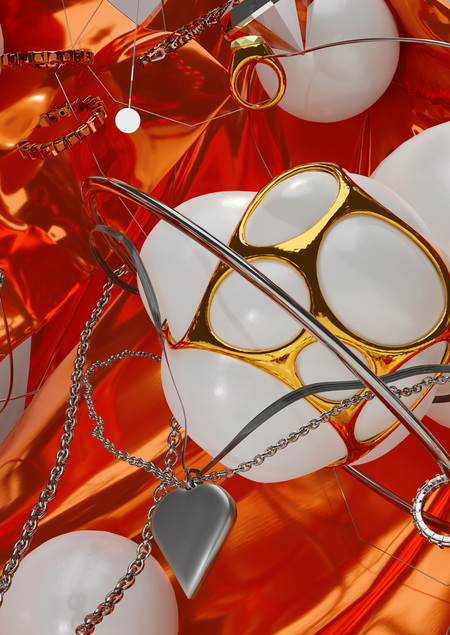 Цель витрины — передать яркость и разнообразность украшений бренда. Выплеск драгоценных металлов.