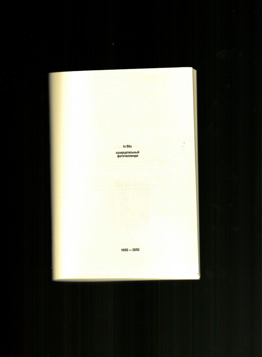 in Situ [ин Ситу] исследует феномен созерцательности со всевозможных сторон, используя разный инструментарий: фиксацию через фотографию, книжный переплет, саунд-дизайн, документальные видеозарисовки, кино — форм множество. Экспозиция наполнена глазами, ушами и словами многих авторов.