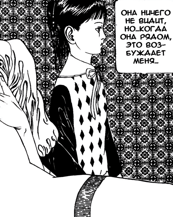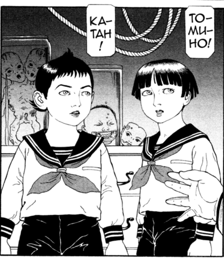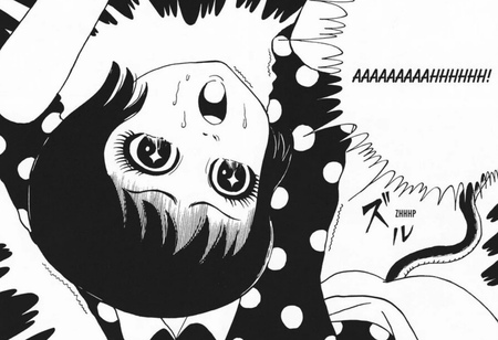 В манге «Томино в аду» и в главе «Целлулоидная кукла» из антологии ДДТ изображены две крайне похожих сцены, в которых пусть и странные, но естественные для ребенка действия, напоминают зрителю оральный секс. В случае с первым героем впечатление усиливает ракурс и позы: мальчик стоит на коленях, ему сверху протягивают гусеницу размером и формой напоминающую фаллос. Кроме того, Суэхиро Маруо использует кадрирование, сделав на этой сцене акцент и дав рассмотреть ее в подробностях. Голод мальчика, подстрекающий его есть все, что угодно, интерпретируется зрителем как удовольствие от оральных ласок. Так же детально изображено навязчивое желание девочки лизать предметы: используется кадрирование, проработан рот и слюна, кроме того, она лижет куклу в интимной зоне. Мангака изображает девочку максимально провокативно, так, что зритель если не оправдывает, то догадывается о логике действий, оставшегося с ней наедине мужчины. Рисунок девочки, играющей на флейте, в контексте изложенного выше обладает эротическим подтекстом.
