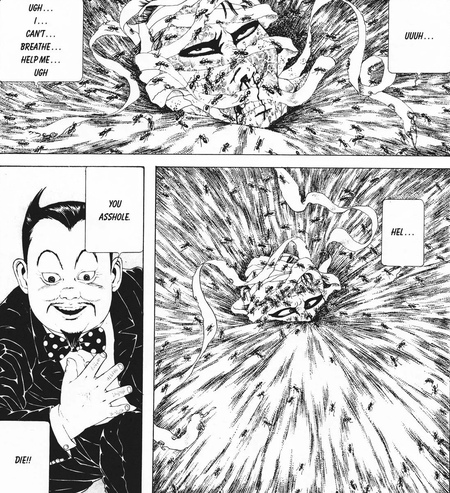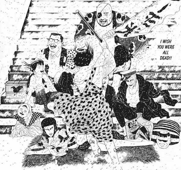 Мотивы педофилии и детского абьюза в творчестве Суэхиро Маруо представляют собой широкое поле для интерпретации. Он перенес мотив невинности глазами порока в Набоковской манере в азиатскую культуру. Одни читатели посчитают его произведения оправданием растления, другие найдут в этом критику искаженного пороком взгляда. Так или иначе, исследование принципов, которые мангака взял на вооружение, чтобы добиться подобного синтеза — опасное, но завораживающее путешествие в глубины человеческой натуры, в котором исследователь ступает по лезвию провокации. Подытожить хочется финалом из «Шоу уродов господина Араси», где Мидори желает смерти своим обидчикам, а потом оказывается в пустом пространстве, в котором постепенно тает ее маленькая фигура. На мой взгляд, эта сцена в поразительно минималистичной манере иллюстрирует одиночество, потерянность и пустоту персонажа, подвергшегося насилию. Повествование, насыщенное ложными намеками и иллюзиями, рассеивается, и герой, предоставленный сам себе, уже сам теряется в реальности. Не остается ничего кроме иероглифа крика — и на фоне гротескных детализированных композиций и изощренных сцен этот жест кажется, пожалуй, наиболее реальным.