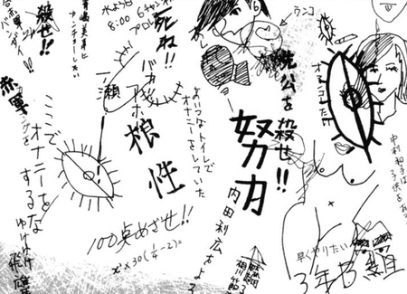 Разрисованные детьми стены из «Инфернальной раны» емко отражают представленный автором мотив детской испорченности. Обычные зарисовки пересекаются с набросками гениталий и ругательствами, представляя собой причудливый синтез наивного и пошлого.