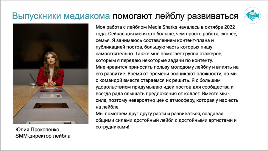 Вчерашние стажёры лейбла — сегодняшние выпускники: о результатах и процессе собственной творческой деятельности по производству, упаковке и промоушену контента для артистов Media Sharks.
