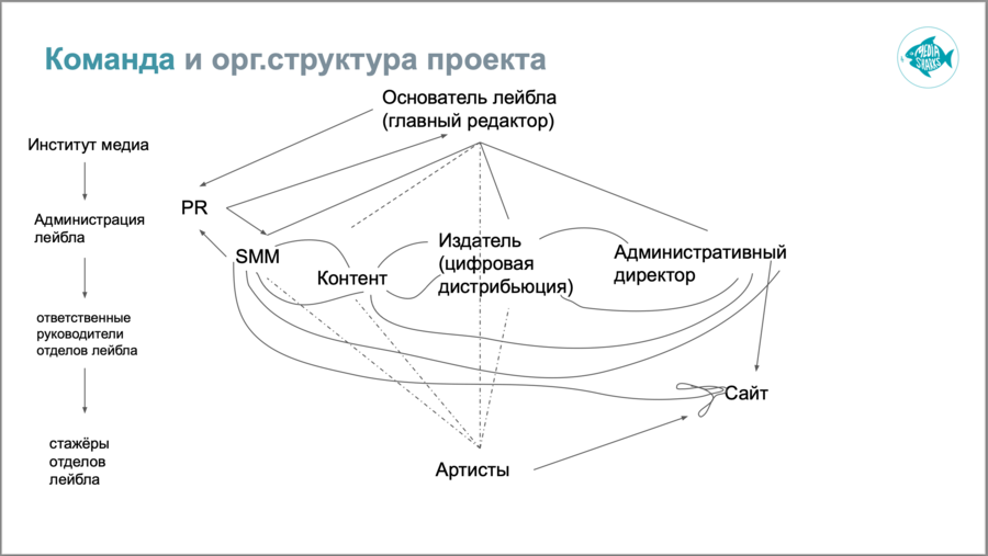Лейбл Media Sharks сотрудничает с опытными профессионалами креативных индустрий Москвы и передаёт знания и опыт студентам Факультета креативных индустрий НИУ ВШЭ, подготавливая кадры в сфере цифрового издания музыкального контента.