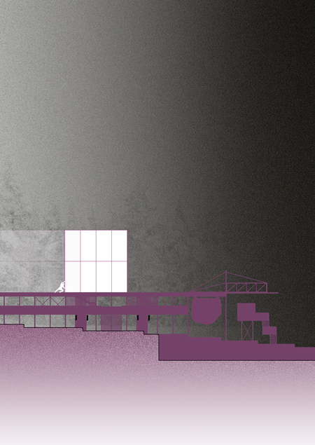 Куб «толкается» по рельсам, совершая четыре остановки. Попасть внутрь куба можно двумя способами: либо с помощью гидравлического подъемника, либо своим ходом по лестнице.