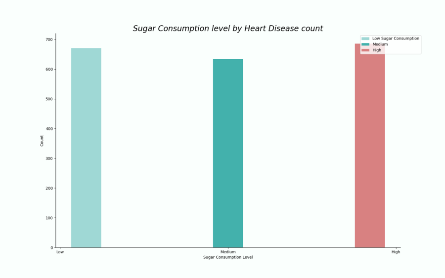 Среди людей с заболеваниями сердца больше всего людей с высоким потреблением сахара. Это связано с тем, что диабет повышает риск развития заболеваний сердца.