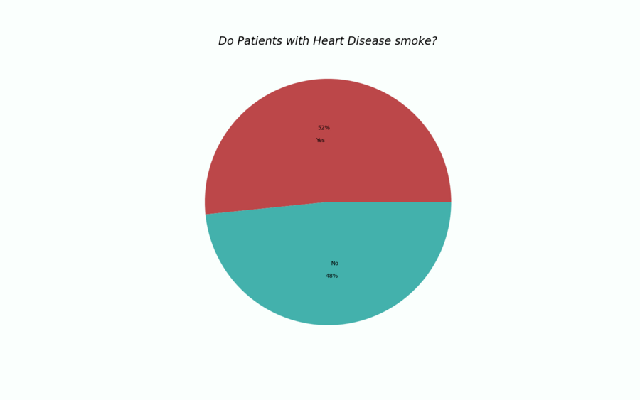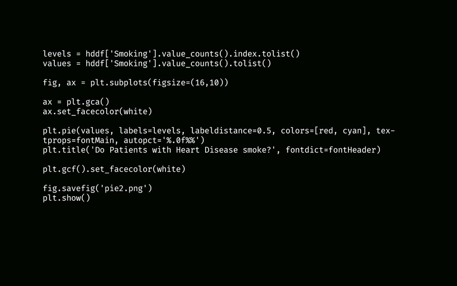 Круговая диаграмма. Процент курящих и не курящих среди людей с заболеваниями сердца.