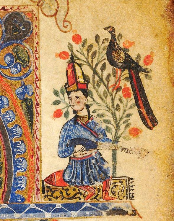 Девушка-гусан с сазом. Матенадаран. Монастырь Хоромос, 1211 год. // Музыкант с сазом. Матенадаран. 13 век.