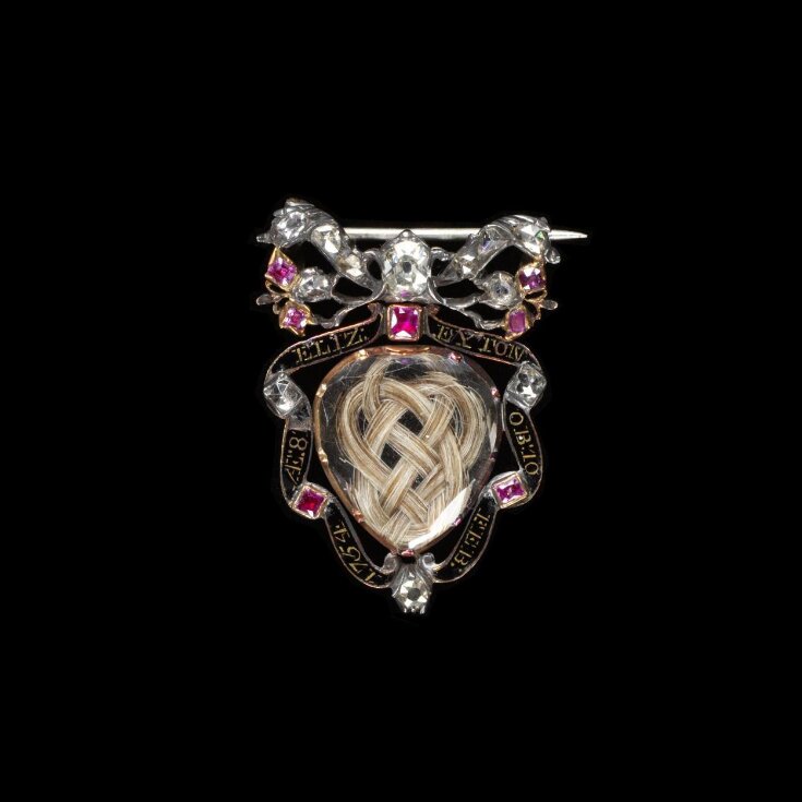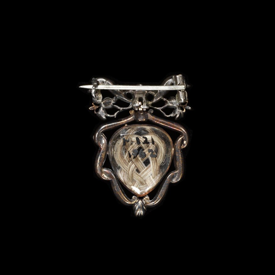 Траурная брошь с прядью волос, неизвестный автор, 1754. Музей Виктории и Альберта.