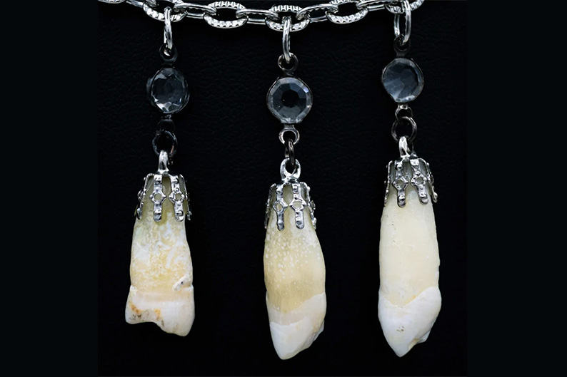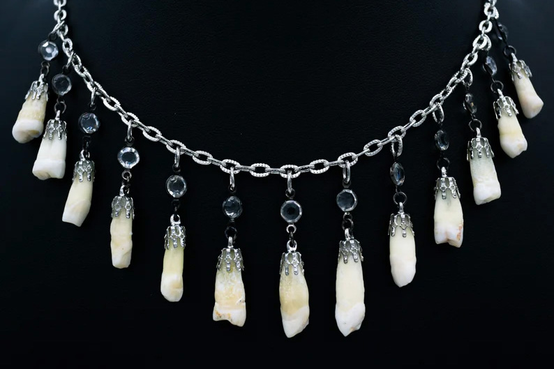 Украшения с зубами могут казаться необычными и даже тревожными, являясь при этом частью тела, вырванной из естественного контекста.