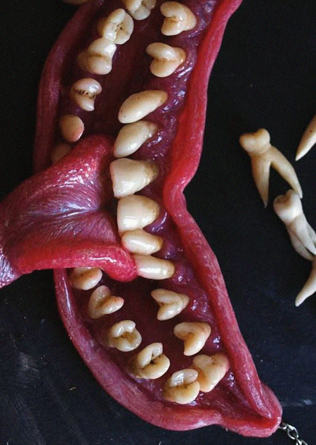 Противоречивость украшений с настоящими зубами заключается и в их внешнем виде: в отличие от имитаций здесь присутствуют настоящие дефекты.