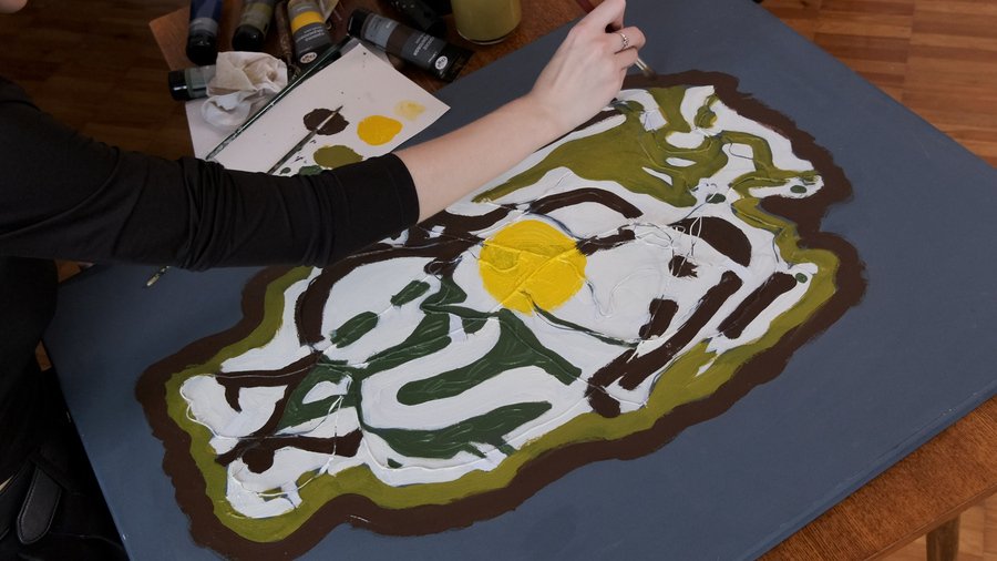 В этом перформансе мои картины станут пространством для окончательного избавления. Мне не хочется отказываться от собственного художественного опыта, но хочется преобразовать его в нечто совершенно новое. Чтобы сделать это, я предложила художницам, которые также как и я размышляли или размышляют на темы личных травм, не погружаясь в контекст, написать свои картины поверх моих холстов.