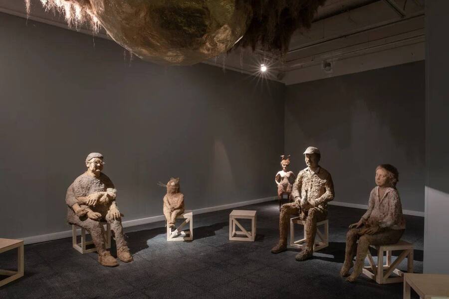 Используемые в инсталляции образы отличаются гротескностью и причудливым внешним видом, а персонажи, жители города, погружают зрителя в атмосферу фантастического мира.