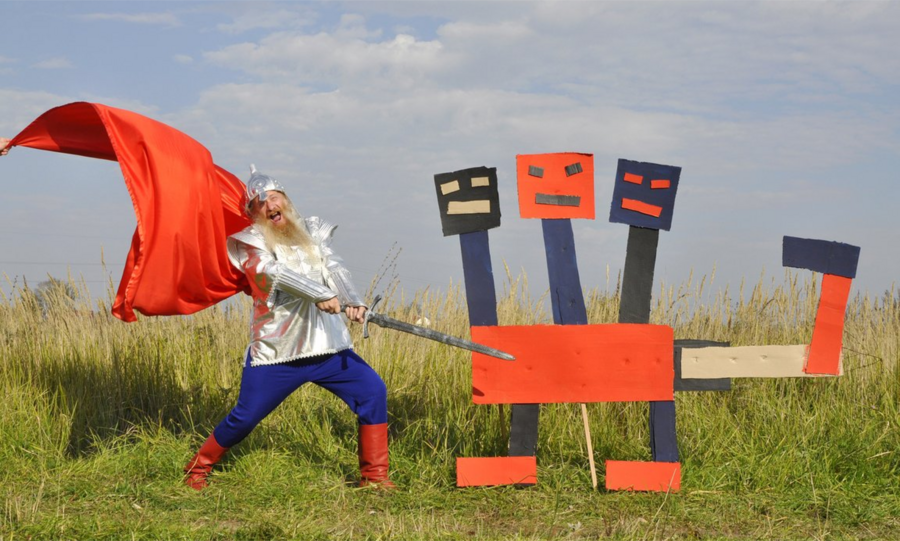 В серии работ «Русские чудовища» художники сталкивают сказочных богатырей с абстрактными формами русского авангарда. Сказка переосмысляется через введение новых, современных чудовищ.