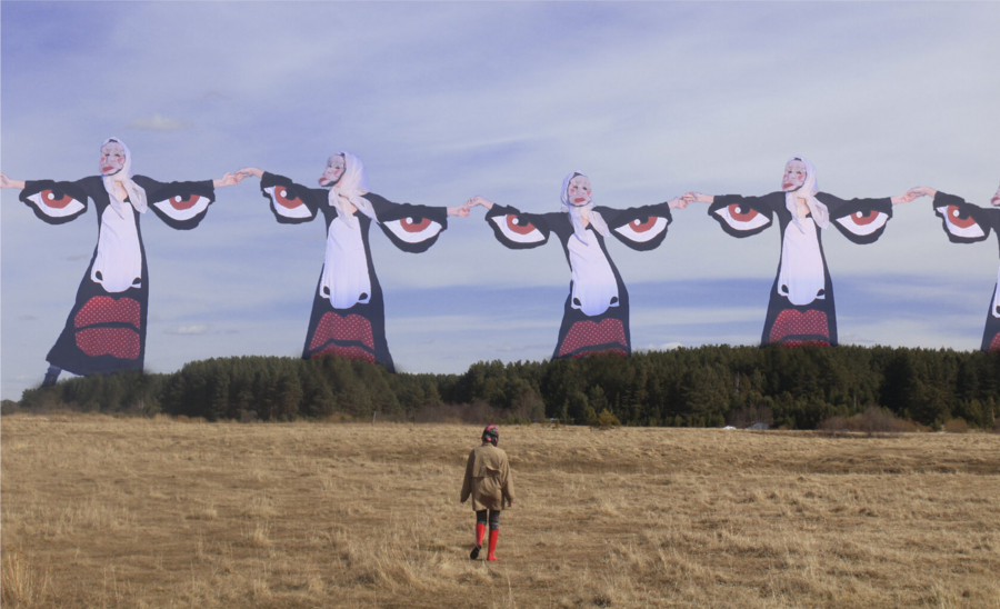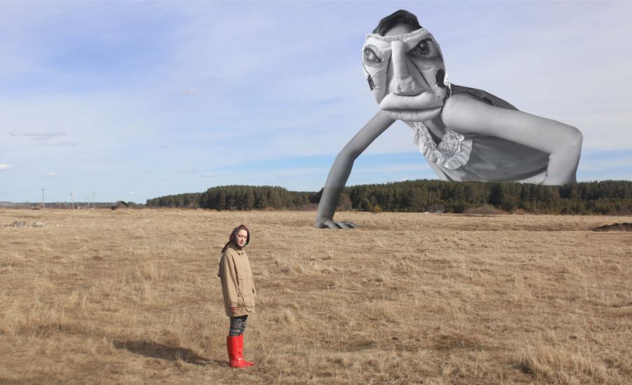 В серии «Русское инородное» Алиса Горшенина использует фольклорные мотивы как основу для создания нового визуального языка, где сказка становится способом разговора о собственной идентичности. Художница деконструирует сказку, помещая себя в центр произведений.