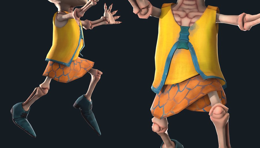 Для шандарийца был сделан универсальный меш. На него можно применять разные сеты текстур, чтобы получить разнообразие костюмов в игре.