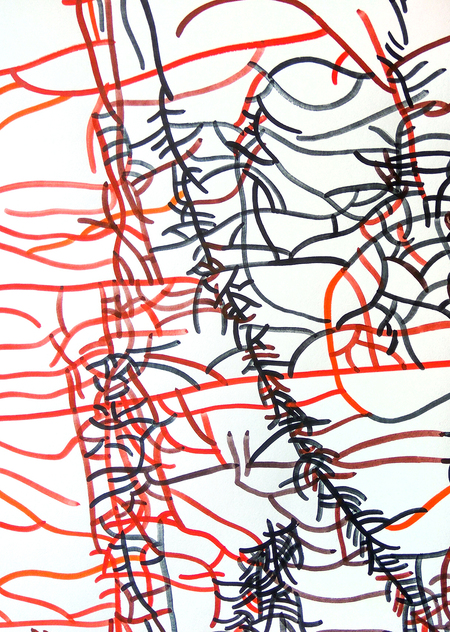 Мы, студенты, его описывали, укладывали, укрепляли, гладили. Изучали в музеях. Позже на сайте Метрополитен-музея, где фотографии произведений выложены в достаточно хорошем разрешении, я рассматривала живопись эпохи Возрождения и заметила, что сетка кракелюров гораздо более разнообразна, чем я предполагала раньше. Сетка красива. Сетка — свидетельство ошибок в технологии, жизни картины, времени. Рисунок сетки, перенесенный на лист бумаги, становится основой самостоятельной графической работы.