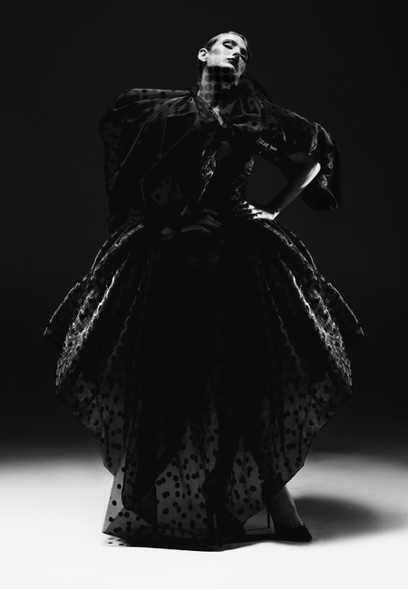 Я наблюдала за трансформацией её стиля: от светловолосой студентки ВГИКа до современной Дивы, узнаваемой и неповторимой. В этом преображении остаются неизменные детали: влияние чёрно-белого кино, причёска «холодная волна» — в моём проекте она трансформировалась в золотой головной убор, туфли, красная помада, чёрный цвет, строгие силуэты.