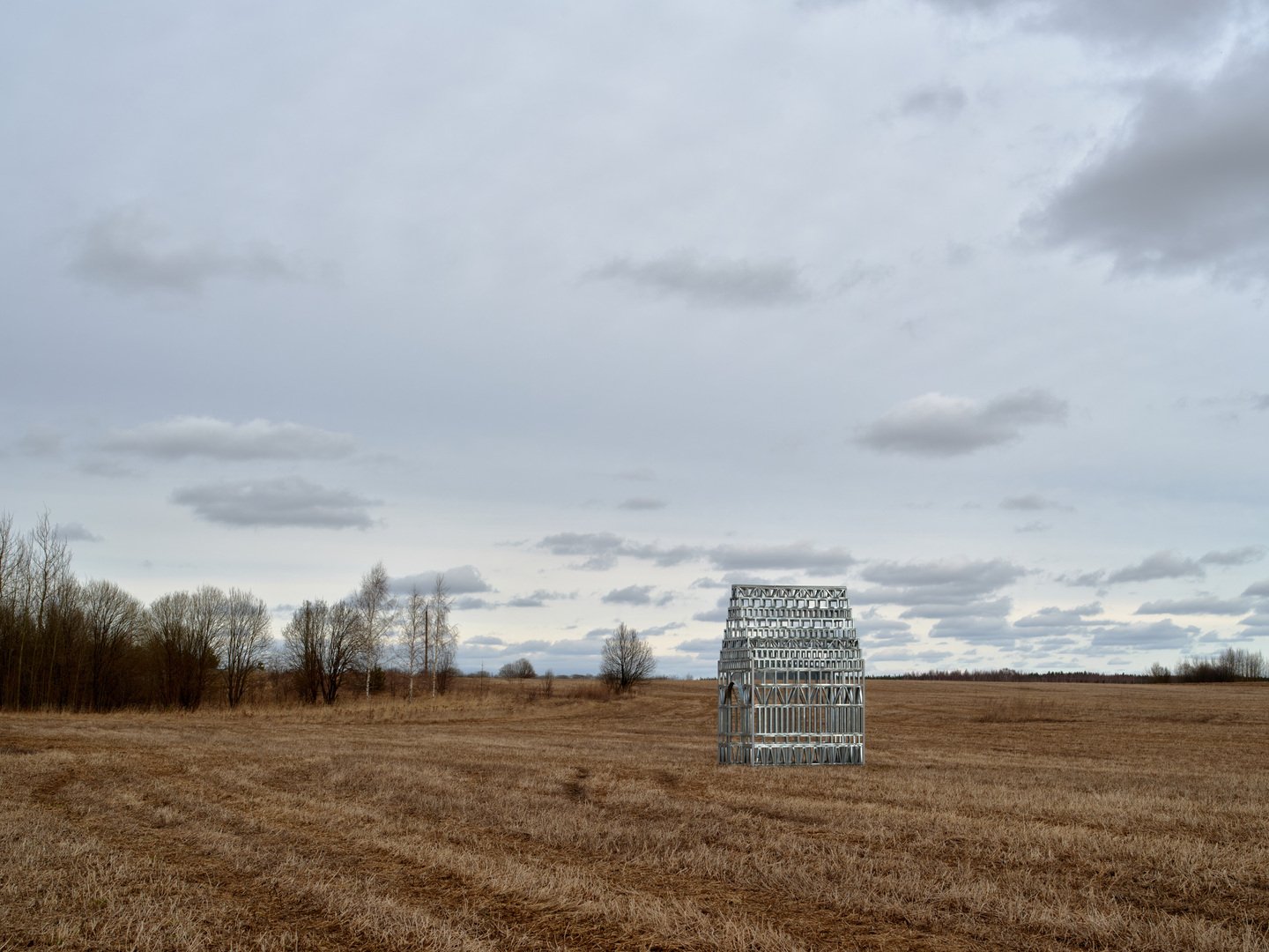 After three days on display at the festival, the Temple of the Laborers was not dismantled or discarded. Instead, it was given a new life, its meaning subtly transformed by its new context. In late 2024, the installation reappeared in an open field near Menchakovo — a historic village rich in culture, enveloped in tranquil scenery, and now undergoing thoughtful revitalization. Once on the verge of decline, Menchakovo is being reborn thanks to a group of dedicated locals. Today, it offers an ethical model of rural tourism, with new and restored homes available for guests, artist residencies in operation, and contemporary artworks and architectural pieces integrated into the village landscape. At the entrance to the settlement, the Temple of the Laborers found its second home.