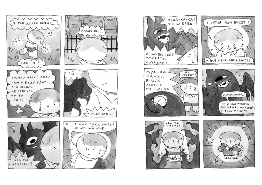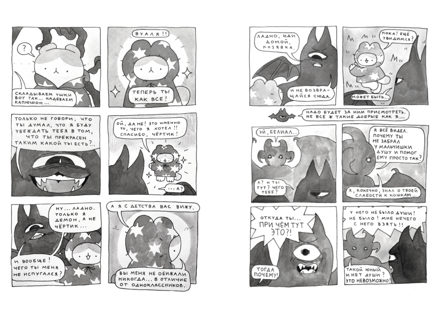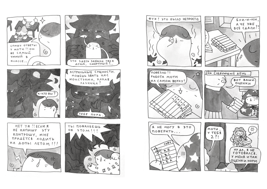 Зин с первых страниц погружает нас в мир маленького котёнка Тофу, в котором повседневность переплетается с оккультным миром, демонами и сверхъестественным.