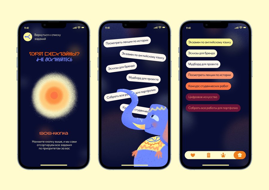 На первом курсе я разрабатывала дизайн приложения для тайм-менеджмента, которое бы позволяло бы найти гармонию между важными делами и отдыхом. В проекте-стартапе, созданном с помощью различных нейросетей, я решила пойти дальше и создать робота-помощника, вдохновлённого маскотом приложения.