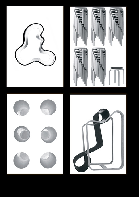 Календарь, посвящённый работам великого финского архитектора Алвара Аалто. Каждая из четырёх частей календаря посвящена одной из его работ (Библиотеке Выборга, креслу Паймо, вазе Савой и знаменитому табурету). Форма календаря необычная, в сложенном виде календарь представляет собой зин, но если его разложить, внутри можно найти плакат. Такая форма размышлениями Аалто о функциональности предметов.