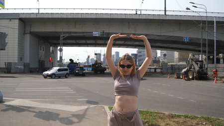 -Постоять рядом с завалившимся знаком; -Придержать шлагбаум; -Попрыгать по пешеходному переходу (ведь внизу пропасть); -Повторить форму строительных труб; -Полетать на знаке; -Поместить баскетбольное кольцо в ладонь; -Пригрозить бутылкой друзьям; -Представить, что дома это лестница; -Устроить фотосъемку с тантамареской; -Подержать машины; -Представить себя вентиляционной системой; -Подержать все фонари на улице; -Пофальшфасадить/ спрятаться за фальшфасадом; -Померить грузовой захват; -Подержать луну; -Покататься на автокране