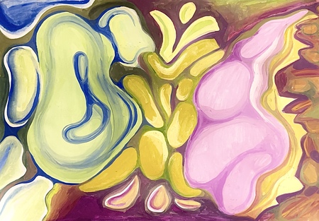 В проекте я создала работы, исследуя темы моих воспоминаний родного края, времени, идентичности и взаимодействия человека с окружающим миром через выразительные образы и символы.
