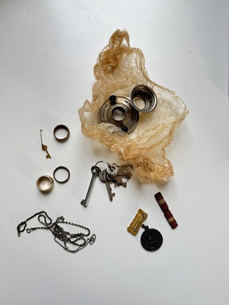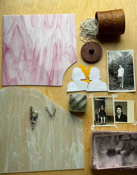 Некоторые вещи имеют для меня особую ценность, они будто телепорты к ускользающим воспоминаниям. Силуэты со старых фотографий я переношу на стекло и зеркало, дополняю их «твёрдыми» предметами из семейного архива. В работах этой серии использованы детали украшений из бабушкиной шкатулки, ключи и даже советская формочка для леденцов. Минималистичные образы, поддержанные акцентными вещами, приглашают личную историю выйти за пределы частного архива и откликнуться в опыте зрителя.