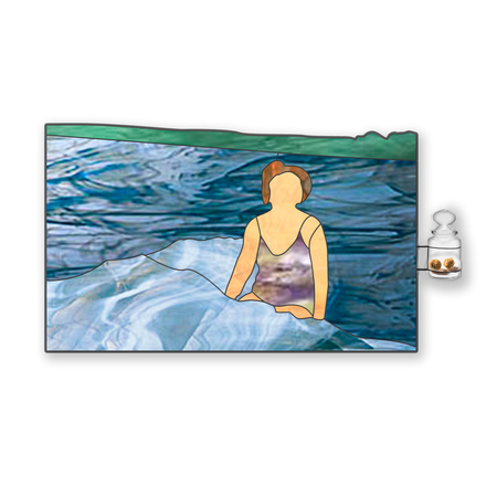 Силуэты-скульптуры разбавляет скульптура-метафора «Ромашковый чай» из стекла и гербария. Это метафора впечатлений о семье, которые редко бывают однозначными. В этих воспоминаниях — много любви, утешения, тепла и принятия, но также присутствуют тревога, ощущение невидимости, страх. Семья — это сложная, порой гремучая смесь чувств и эмоций разной окраски.