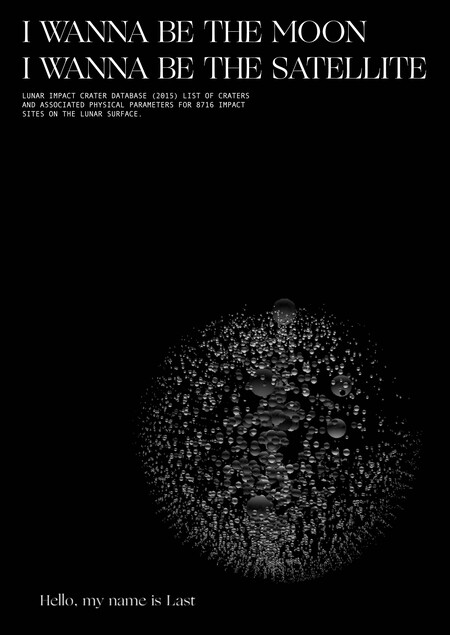 Кратеры — это отпечатки воздействий на космическое тело. В работе смоделирован объект, который наоборот состоит только из кратеров. Собирается новая Луна, как из дырок от бубликов. Настолько много кратеров сформировали поверхность спутника, что из них составляется новый.