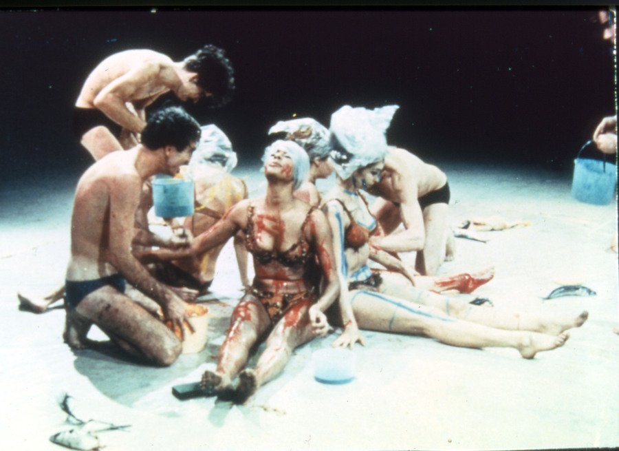Во время перформанса обнажённые актеры взаимодействовали с различными предметами и текстурами (едой, краской, бумагой), они воплощали в жизнь «эротический обряд» и «чествование плоти как материала», двигаясь нарочито раскрепощённо и эротично.