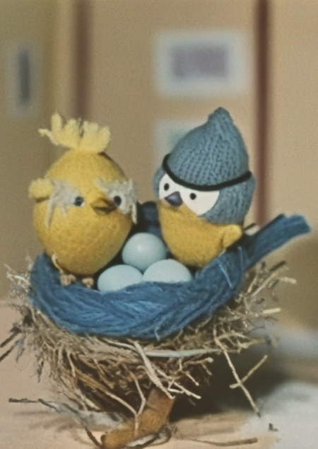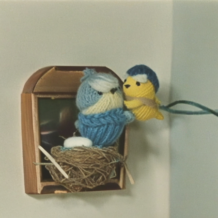 В сгенерированных картинках удалось сохранить милую, кукольную графику с элементами вязания.