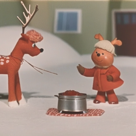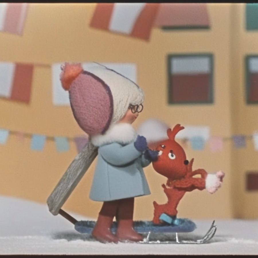 При запросе сгенерировать сказочных персонажей, сеть выдала очень интересное изображение. Была передана зимняя тематика, а также сказочная, теплая и уютная атмосфера, как в мультфильме.