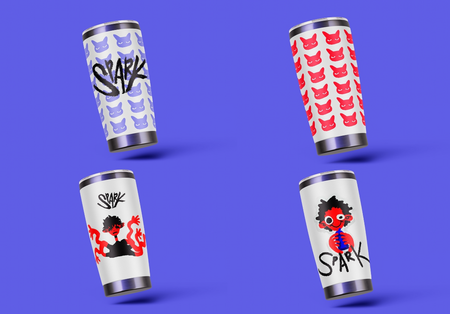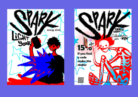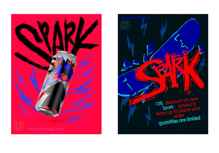 Промпт: Design for Spark energy drink cans featuring the brand’s minimalist logo—a star encased in barbed wire with an eye at the center, in lilac and pink hues. The can design is sleek, modern, and minimalistic, with the logo prominently displayed in the center. The background is a smooth, matte monochrome color, with subtle gradients or geometric patterns to add depth without distracting from the logo. The can also features the word 'Spark' in bold, futuristic typography, placed in a simple, clean font. The overall design exudes energy, creativity, and sophistication, with an urban edge that reflects the brand’s bold character.