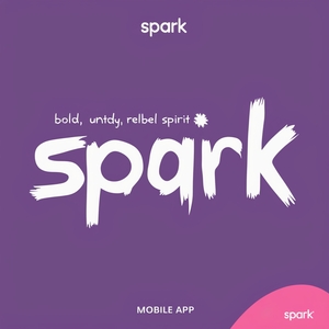 Промпт для шрифта: A bold, untidy, and rebellious spirit font designed for a mobile app by Spark. This font should capture a raw, energetic vibe with minimalist yet impactful lines. Avoiding graffiti styling, it should instead evoke an edgy, contemporary feel with slightly irregular strokes and a hand-drawn touch. The font should be simple yet bold, aligning with Spark’s modern, dynamic branding. Use lilac and pink accents, matching the Spark palette, to maintain brand consistency
