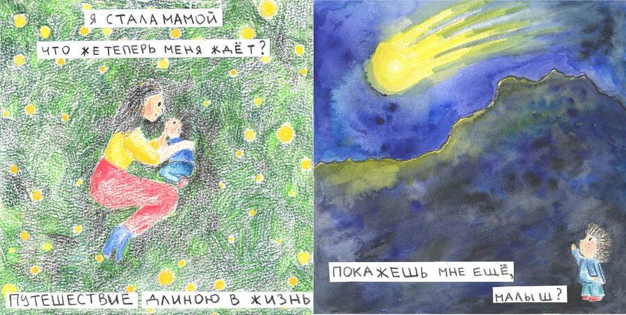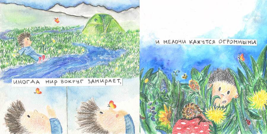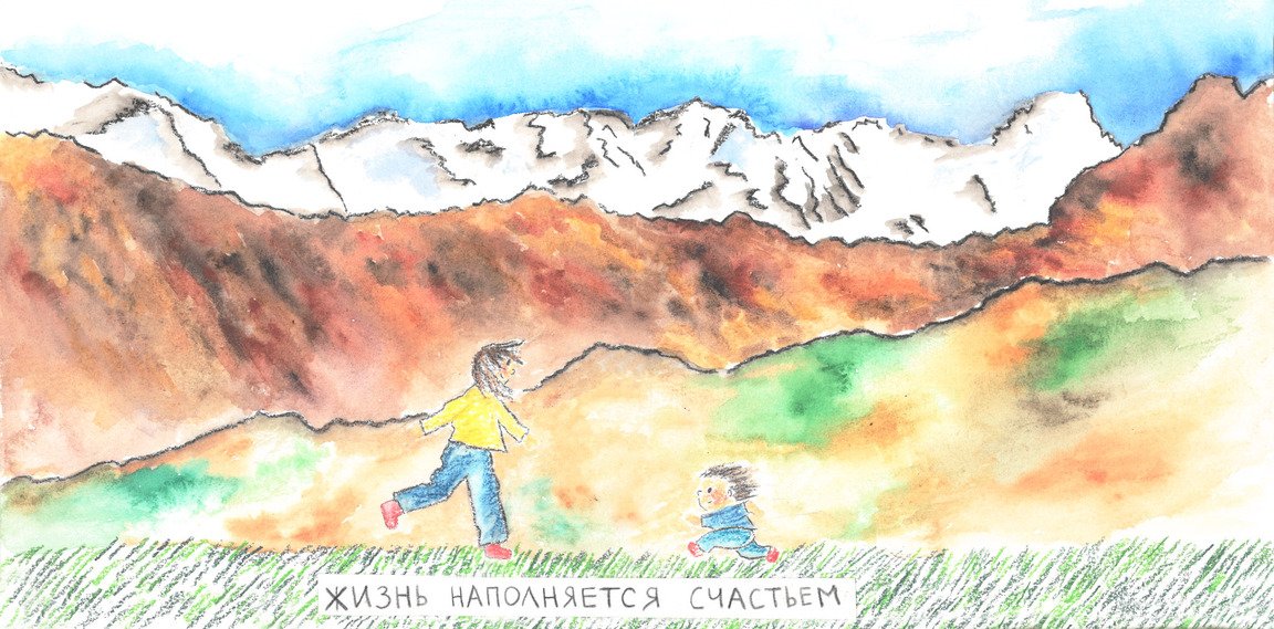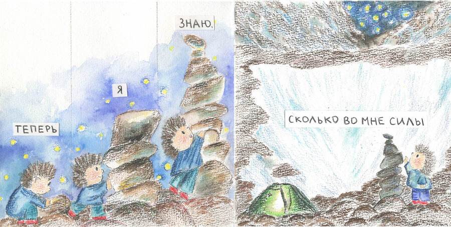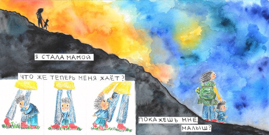 Это история о путешествии малыша и его мамы, о том, что они видят, чувствуют и замечают в пути. В то же время это рассказ о моих чувствах, ожиданиях, сомнениях, о счастье и открытиях. Поход в горы здесь аллегорически отражает опыт, который переживает мама после рождения ребенка.