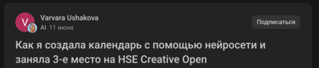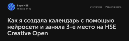 Статья в Telegraph: https://telegra.ph/Kak-ya-sozdala-kalendar-s-pomoshchyu-nejroseti-i-zanyala-3-e-mesto-na-HSE-Creative-Open-06-11